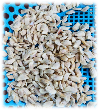 Vào mùa từ tháng 8-12 bòng đã to và thường rất sai quả. Chúng em thu hoạch về sử dụng vỏ, hạt tươi trực tiếp hoặc thái phơi khô để sử dụng dần.