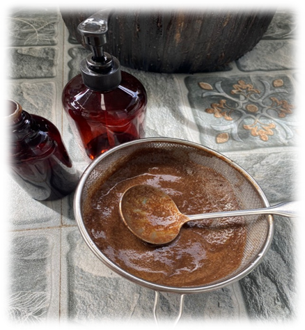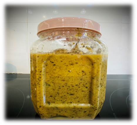 Lần 2: Chúng em sử  dụng 0,6kg bách bộ, 100g hạt na, 100g lá cây xương cay,  100g bột gạo rang, 100g đường vàng, 100g men lá, 500ml nước ấm 500C. Thu được hỗn hợp dạng sệt thơm tuy nhiên kết quả thử nghiệm chỉ có 5 con chấy chết số lượng vẫn còn ít.