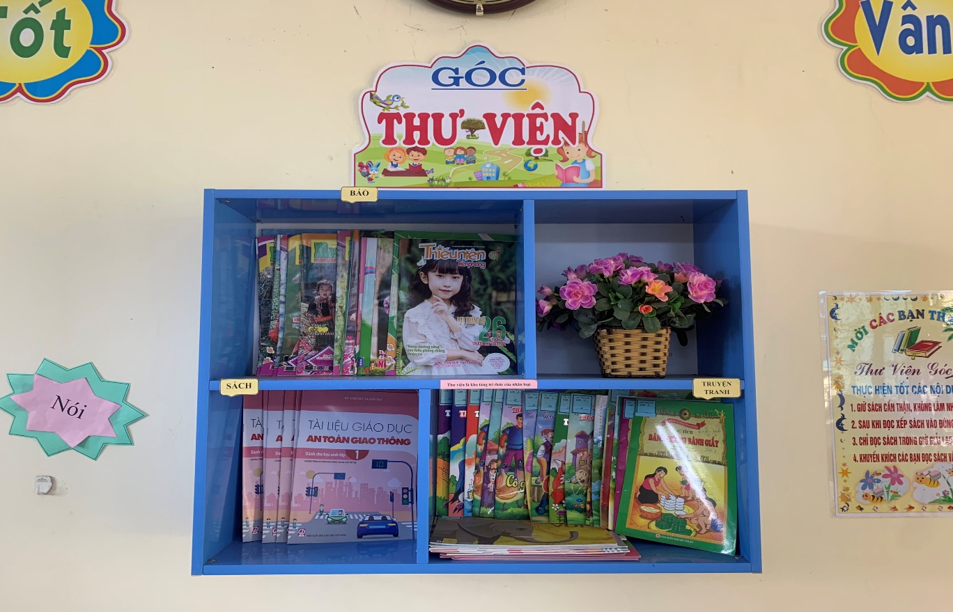 Một là, tôi tăng cường trang trí lớp học thân thiện. Không gian học tập là môi trường ảnh hưởng rất lớn đến tâm lý thoải mái của học sinh. Chính vì vậy, ngay từ đầu năm tôi đã cùng các em học sinh trang trí lớp học bằng các vật liệu sẵn có như giấy A0, cây xanh, các truyện tranh, các vỏ chai nhựa….Các em sẽ được thoả sức sáng tạo cùng giáo viên để xây dựng các Góc sáng tạo, Góc thư viện, Góc cây xanh. Thông qua các sản phẩm trang trí đó, sẽ giúp học sinh thêm tự tin hơn, thích đến trường hơn.