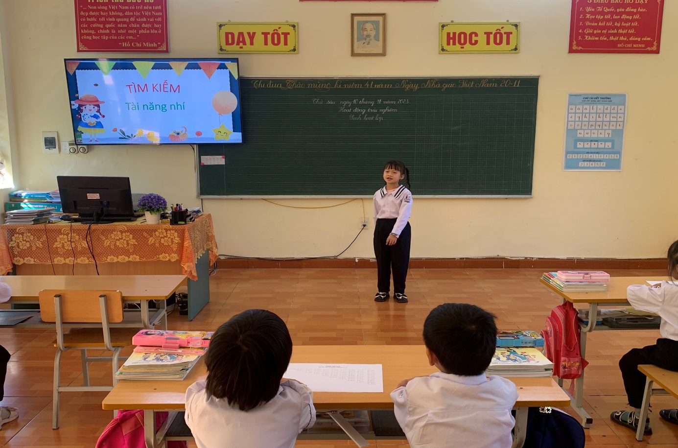 Cuối cùng, vào đầu mỗi tiết học, hay chuyển tiết tôi luôn cho các em vận động cùng video một bài hát, một bản nhạc sôi động để kích thích những cảm xúc tích cực trong học sinh, từ đó các em thu nhận kiến thức dễ dàng hơn. Đó có thể là bài hát phù hợp với nội dung bài học, cũng có thể là điệu nhảy của nhân vật hoạt hình ngộ nghĩnh, đáng yêu mà các em rất yêu thích. Không chỉ mỗi học sinh tự thực hiện, để các em cảm thấy thoải mái nhất, hoà đồng hơn, thực hiện sôi nổi đúng nghĩa với vận động thì bản thân tôi cũng hoà mình theo điệu nhảy hay ngân nga theo lời bài hát cùng với các em. Cùng với những lời khích lệ những em chưa tích cực, nhút nhát như: “Bạn A giơ tay múa theo cô nào, chúng mình nhảy đều nhé, nhún mạnh hơn chút nữa nào các con” Các con nhảy đẹp lắm”. Khi kết thúc bài vận động, luôn có những câu hỏi dẫn dắt hoặc kết nối để các em có cơ hội được chia sẻ, được nêu ý kiến của bản thân. Ngoài ra, trong những tiết hoạt động trải nghiệm sinh hoạt lớp, ngoài những việc đánh giá nhận xét tôi đã cho các em thể hiện năng khiếu của mình trước lớp. Có em thì thích hát, múa, có em thì vẽ, kể chuyện, đọc thơ, có em thì thích nhảy... Khi được lên thể hiện năng khiếu của mình các em rất thích thú. Tôi có cảm giác lúc này học sinh đã bóc được cái lớp vỏ nhút nhát của mình mà thể hiện hết tài năng cho cô và các bạn cùng xem. Và đây có lẽ là thời gian mà các em mong chờ nhất sau một tuần học, các em rất hào hứng và vui vẻ, mạnh dạn, tự tin khi tham gia thể hiện tài năng của bản thân.
