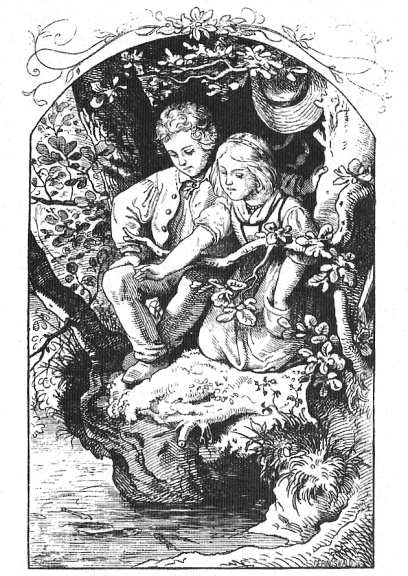 Chiều tối, hai anh em tới một cánh rừng rộng, cả hai đều mệt mỏi vì buồn chán, vì đói và vì đường xa nên chui ngay vào hốc cây mà ngủ thiếp đi.